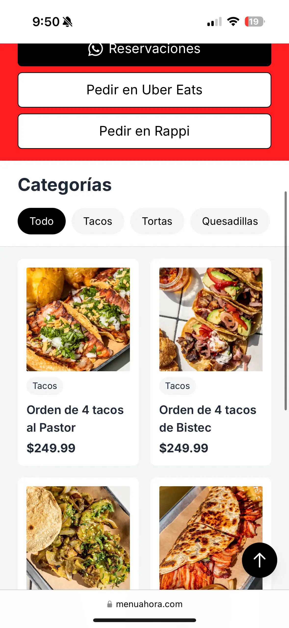 - Sin opciones para pedidos por WhatsApp